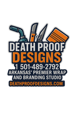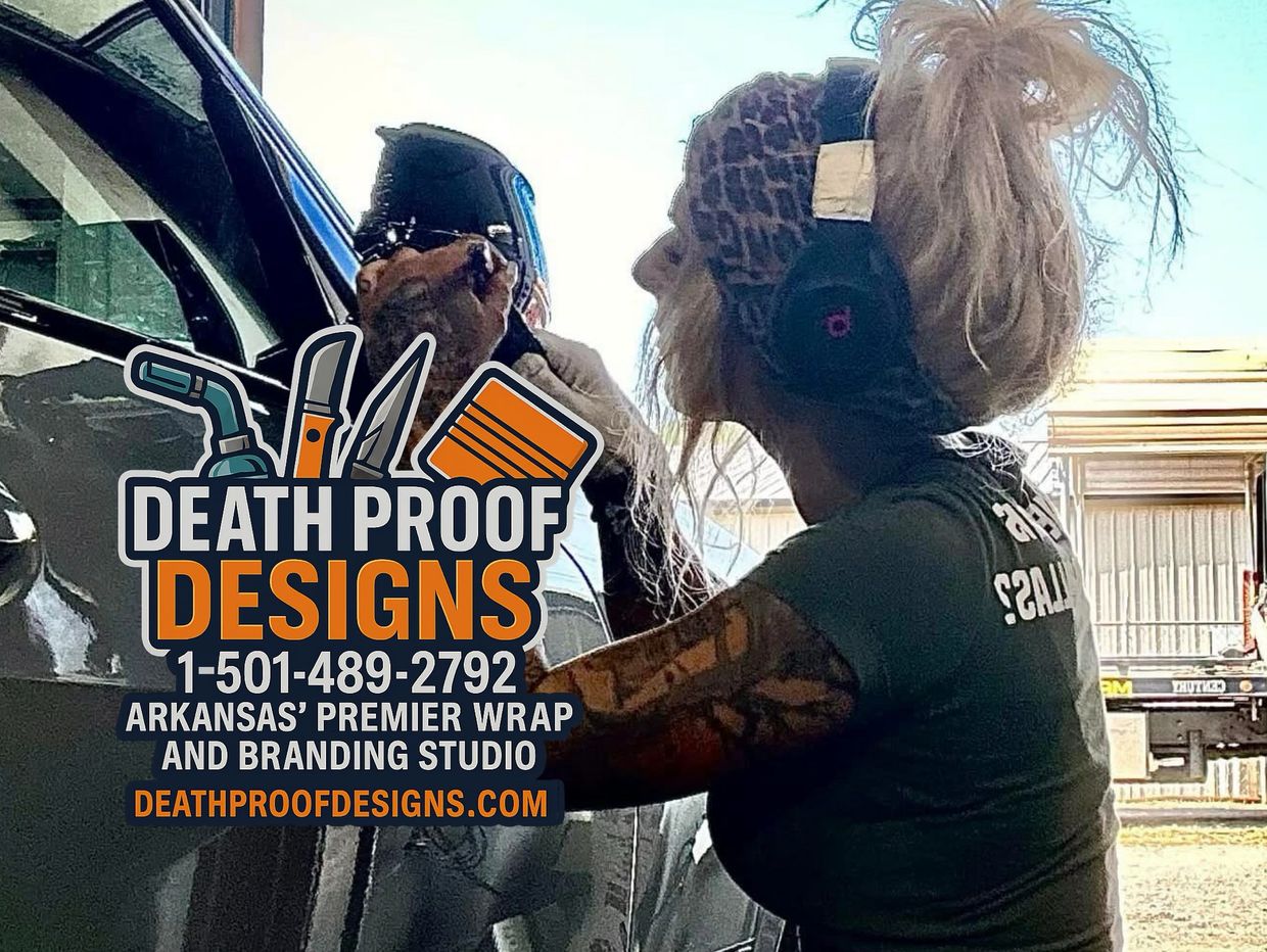 Death Proof Designs LLC is Arkansas’ only woman-owned vinyl wrap and branding studio, founded by Alexandria Crumpler and based in the heart of Little Rock. We specialize in custom vehicle wraps, partial and full installations, decals, business branding, promotional materials, and social media marketing. With a bold approach and unmatched attention to detail, Death Proof Designs helps businesses and individuals stand out — literally. Whether it’s a camo-wrapped Jeep or high-impact business signage, we make branding stick.